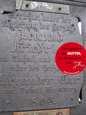 einen Aufkleber hergestellt. Dieser kann an alle Plakate und Denkmäler,